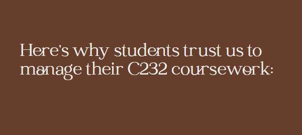 We’re more than just an academic assistance platform we’re your partner in achieving academic excellence. Here’s why students trust us to manage their C232 coursework: