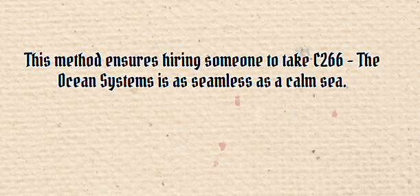 These aren't weaknesses; they're realities. By hiring someone to take C266 – The Ocean Systems, you're investing in balance and progress.